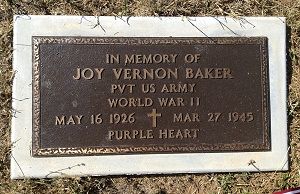 Pvt Joy V. Baker enlisted At Fort Sam Houston, Texas on 6 October 1944.His initial burial took place on Saint Avold Cemetery, Metz, France.