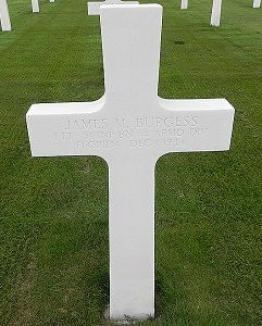 1st Lt James M. Burgess was married to Agnes Christine Shomaker in Dade, Pasco County, Florida on 5 March 1944.He was first buried at Limey Cemetery, Toul, France.