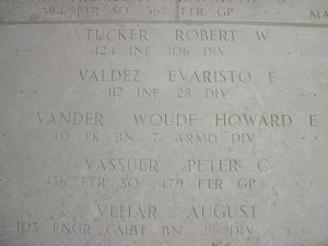Sgt Howard E. Vander Woude enlisted on 3 February 1942 at Fort Custer, Michigan.He was officially declared dead one day and one year after he was reported missing in action.