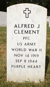 Pfc Alfred J. Clement attended Graveraet High School and was a mechanic.He enlisted at Fort Sheridan, Illinois on 6 November 1941.