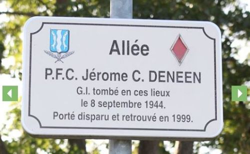 On 17 September 2000 skeletal remains were discovered in the Horseshoe Woods, located near Corny, France. A civilian group, Thanks GI Association, discovered the remains and an identification tag. In May 2001 the identification process had been completed and the remains were positively identified as Pfc Deneen.