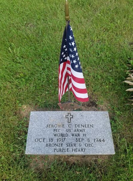 Jerome C. Deneen graduated from Black Earth High School and worked on his father's farm.He enlisted at Fort Sheridan, Illinois on 7 November 1941.