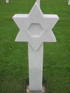 Fred Kohn, other records refer to the family's surname as being Kuhn, migrated to the United States in 1920, taking the Adriatic from Southampton, England to New York. He worked as a plumber before his enlistment at Fort Dix, New Jersey on 12 March 1943.He is commemorated on a monument unveiled in Ospel, the Netherlands on 6 November 2019 in memory of the American soldiers who fell during the liberation of the town.