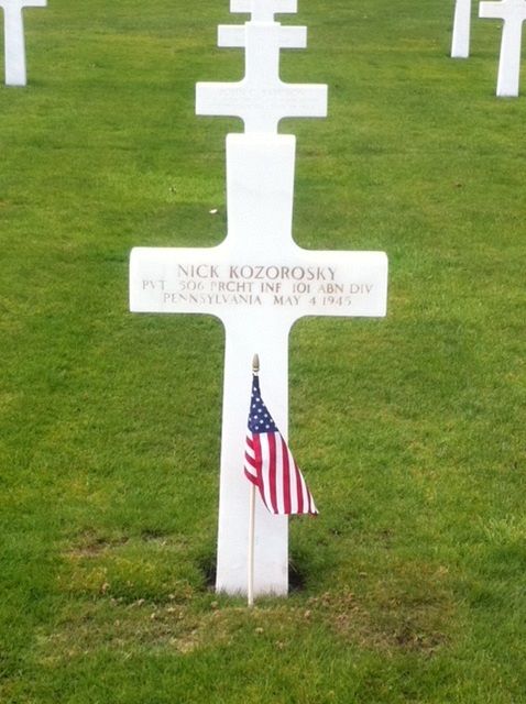 Pvt Nick Kozorosky enlisted in Altoona, Pennsylvania on 11 May 1943.Source of information: Peter Schouteten, www.abmc.gov, www.wwiimemorial.com, www.archives.gov – WWII Enlistment Record, www.ancestry.com - Headstone and Interment Record / Pennsylvania, Veteran Compensation Application Files, WWII / Hagdues Family Tree, http://www.ww2-airborne.us