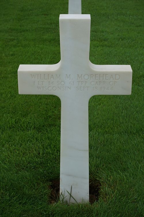 1st Lt William M. Morehead graduated from Belleville High School in 1937. He attended college for two years and was a salesman before he volunteered for the Army of the United States in Milwaukee, Wisconsin on 28 January 1942.Source of information: Peter Schouteten, www.abmc.gov, www.wwiimemorial.com, www.archives.gov - WWII Enlistment Record, www.ancestry.com - Headstone and Interment Record / Hoesly Family Tree / 1930 Census, http://www.ww2gp.org/kia.php