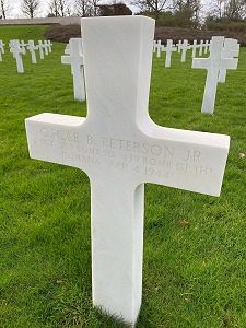 S/Sgt Peterson was shot up badly in the plane. Crewmembers saw him laying on a stretcher in the train which took them to a hospital. He died two days later in the Branch Hospital at Linz of internal injuries. He was initially buried at the cemetery at Linz/Danube on 4 April 1944.