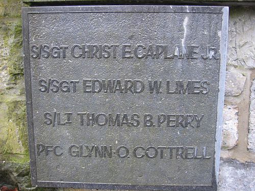 He is remembered at the crash site location in Tohogne, Belgium, with a memorial plaque.