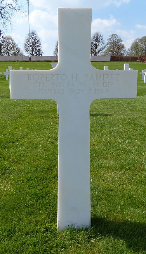 Cpl Roberto H. Ramirez was first buried at Temporary American Military Cemetery Limey, France.Source of information: Peter Schouteten, www.abmc.gov, www.wwiimemorial.com, www.ancestry.com - Headstone and Interment Record / 1930 Census, http://mathieu.gitzhofer.free.fr/irongb.php