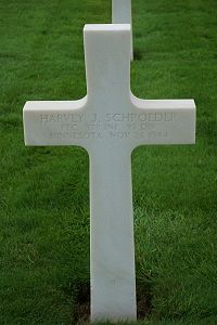 Pfc Harvey J. Schroeder was first buried at Temporary American Military Cemetery Limey, France.Source of information: Peter Schouteten, www.abmc.gov, www.wwiimemorial.com, www.ancestry.com - Headstone and Interment Record, http://mathieu.gitzhofer.free.fr/irongb.php