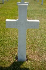 The statements about the circumstances of his death are contradictory according to the MACR. According to one statement, he was last seen, lying on the floor of the plane. He had hesitated to jump before the plane blew up. Another statement says he couldn't get the tail door or the door in the waist open, and he was killed instantly when the plane hit the ground. Yet another statement says his parachute failed to open. His maimed body was identified by a letter in his pocket.