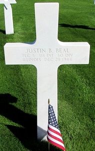 T/5 Justin B. Beal attended high school for two years and was a chauffeur, employed by the Gebhart-Gushard Co. before he enlisted in Peoria, Illinois on 22 May 1943.Source of information: Leo Minne, www.abmc.gov, www.wwiimemorial.com, www.ancestry.com – 1930/1940 Census / U.S. Headstone and Interment Record / U.S. WWII Hospital Admission Card Files / U.S. Draft Cards Young Men, www.80thdivision.com
