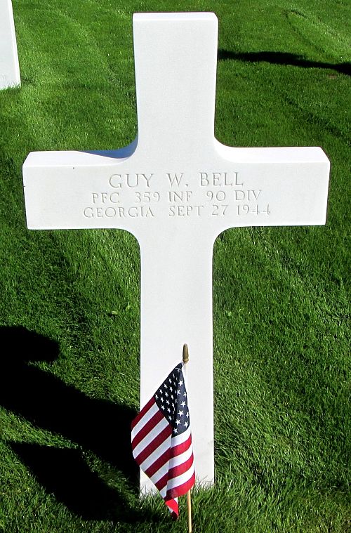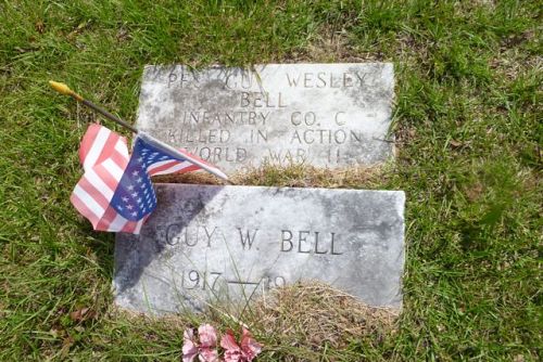 Pfc Guy W. Bell worked on a general farm before he enlisted at Fort McPherson Atlanta, Georgia on 21 July 1942.He is remembered at the Salem Methodist Church Cemetery in Franklin, Heard County, Georgia.