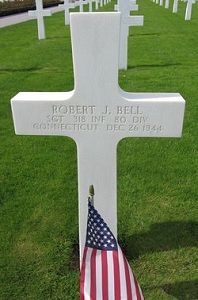 Sgt Bell was awarded the Silver Star medal posthumously for his actions on 23 December 1944 when, as a squad leader, he took over the command of the platoon when the platoon leader became a casualty during an attack on a strongly hold enemy position. Flanking the position under heavy enemy machine gun, mortar and tank fire, Sgt Bell led his men successfully attain the assigned position on the high ground northwest of Ettelbruck, Belgium. It was while he was establishing defensive positions he was wounded by sniper fire.