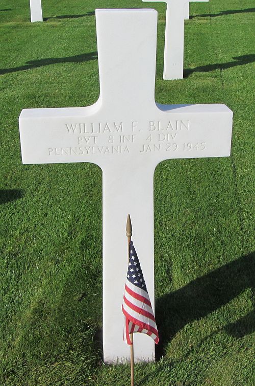 Pvt William F. Blain joined the National Guard in Sunbury, Pennsylvania on 13 January 1941.Source of information: Peter Schouteten, Danny van der Groen – Company’s / 4ID After Action Reports, www.abmc.gov, www.wwiimemorial.com, www.archives.gov – WWII Enlistment Record, www.ancestry.com - Headstone and Interment Record / Relatives File Family Tree / 1940 Census, www.findagrave.com