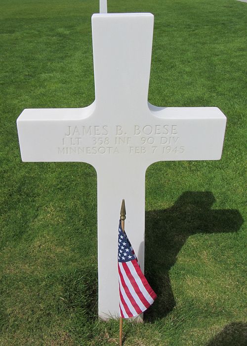 1st Lt James B. Boese entered the service in October 1941. He left for overseas duty in August 1944.Lt. Boese was mortally wounded when his unit ran into a mine field. He was awarded the Silver Star Medal for conspicuous gallantry and intrepidity in action against the enemy on 2 September 1944.