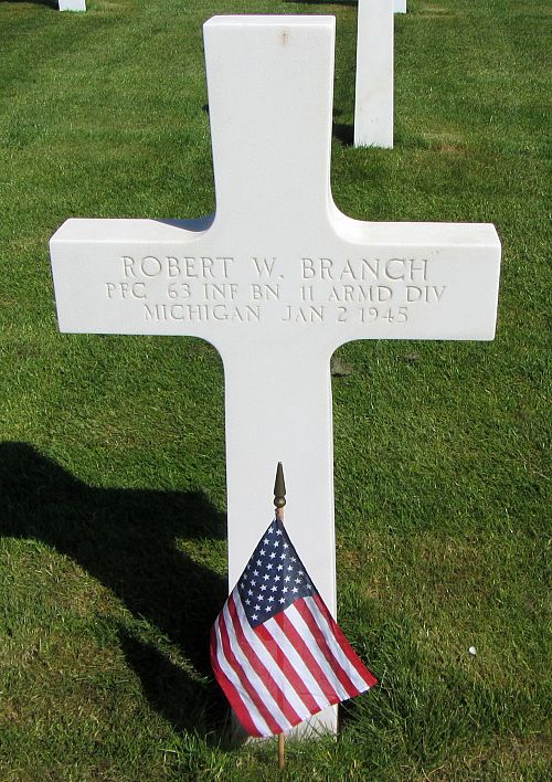 Pfc Robert W. Branch joined the U.S. Army Reserve in East Lansing, Michigan on 3 December 1942.Source of information: André Koch, www.abmc.gov, www.wwiimemorial.com, www.archives.gov – WWII Enlistment Record, www.ancestry.com - 1930/1940 Census / Headstone and Interment Record / U.S. WWII Draft Cards Young Men, 1940-1947,