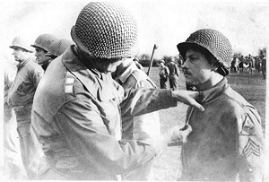 For his action on that day, he was awarded posthumously the Silver Star Medal for a second time. The citation cited: For gallantry in action in the vicinity of Bastogne, Belgium on 8 January 1945. Disregarding his own safety, he crossed two hundred yards of open terrain to rescue wounded man. He then returned through the enemy fire to aid his platoon leader and other men, covering them with his rifle. His gallant action enabled me to escape and cost him his own life.