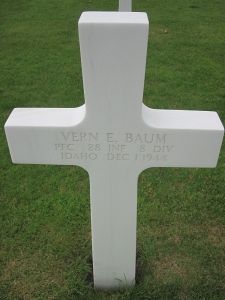 Pfc Vern E. Baum attended college for two years.He enlisted in Boise, Idaho on 15 November 1943.
