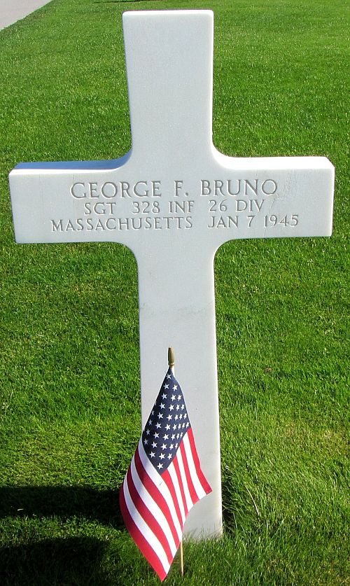 Sgt George F. Bruno attended high school for one year before he enlisted in Boston, Massachusetts on 17 March 1941.Source of information: Peter Schouteten, www.abmc.gov, www.wwiimemorial.com, www.archives.gov – WWII Enlistment Record, www.ancestry.com - Headstone and Interment Record / U.S. WWII Draft Cards Young Men / 1930 Census, www.findagrave.com – Michael Rocha, www.fold3.com – 26th Infantry Division, www.newspapers.com – The Boston Globe 5 March 1945