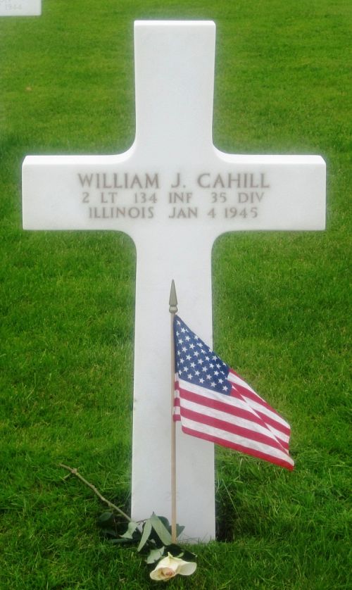2nd Lt William J. Cahill graduated from Riverside Brookfield High School and attended college for one year. He was employed by Ceco Steel Products before he enlisted in Chicago, Illinois on 29 June 1942.Source of information: Peter Schouteten, www.abmc.gov, www.wwiimemorial.com, www.archives.gov - WWII Enlistment Record, www.ancestry.com - Headstone and Interment Record / U.S. WWII Draft Cards Young Men / Cahill Family Tree, After Action Report 35th Infantry Division