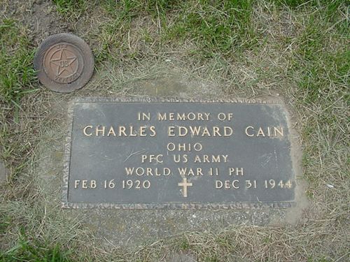 Pfc Charles E. Cain was a welder and flame cutter at the United Welding Company before he enlisted at Fort Thomas, Kentucky on 25 April 1944.He was killed by artillery shell fragments.