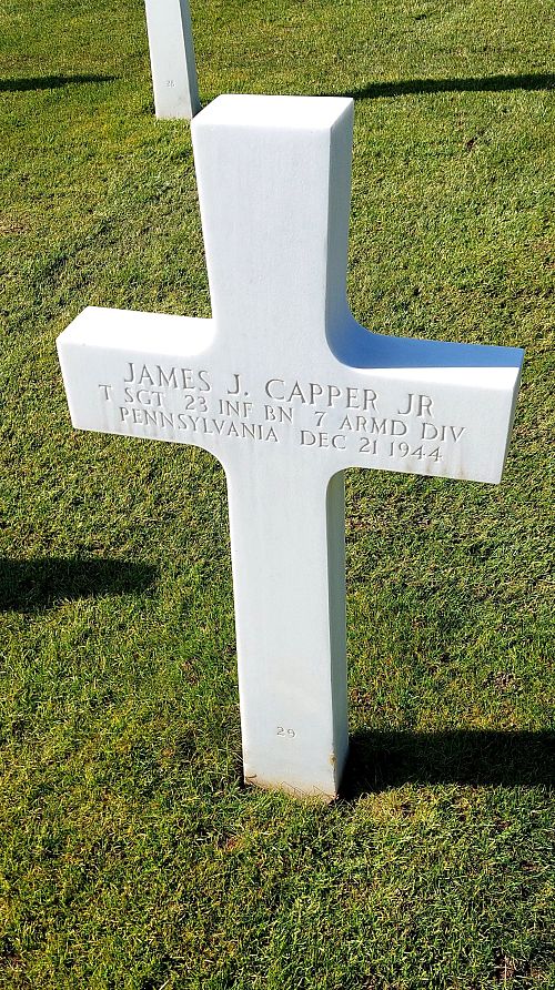 T/Sgt James J. Capper enlisted in Philadelphia, Pennsylvania on 4 May 1942.Source of information: André Koch, www.abmc.gov, www.wwiimemorial.com, www.archives.gov - WWII Enlistment Record, www.ancestry.com - 1920/1930 Census / Headstone and Interment Record / U.S. WWII Draft Cards Young Men, https://www.7tharmddiv.org