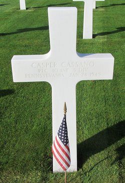 Pfc Casper Cassano enlisted in Greensburg, Pennsylvania on 5 May 1943.Source of information: Leo Minne, www.abmc.gov, www.wwiimemorial.com, www.archives.gov - WWII Enlistment Record, www.ancestry.com - Headstone and Interment Record / 1920/1930/1940 Census / U.S. WWII Draft Cards Young Men, A footsoldier for Patton - Michael C. Bilder and James G. Bilder, The 5th Infantry Division in ETO