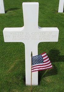 Pvt Walter H. Center was employed at Pegg's Grocery Store.He enlisted in Oklahoma City, Oklahoma on 10 March 1943 and was sent overseas in February, 1944.