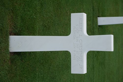 S/Sgt Albert J. Chestnut attended high school for four years and was a routeman before he enlisted at Camp Blanding, Florida on 16 February 1943.He was first buried at the Temporary American Military Cemetery in Grand Failly, France.