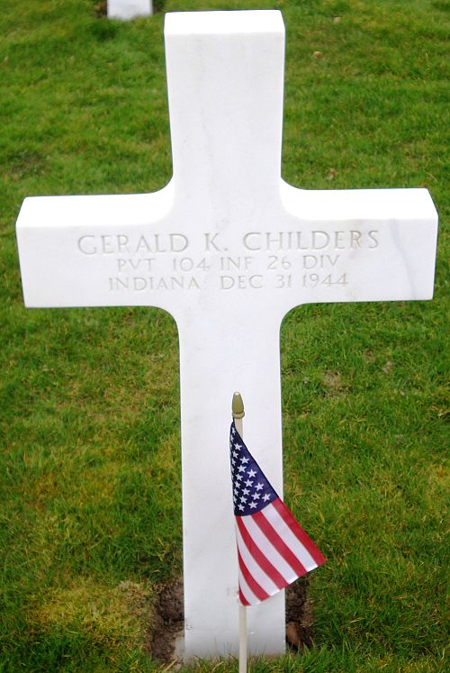 Pvt Gerald K. Childers attended high school for two years and was employed at the Modine Manufacture Company before he enlisted at Fort Benjamin Harrison, Indiana on 21 March 1942.He was killed by small arms fire in his buttock and hip.