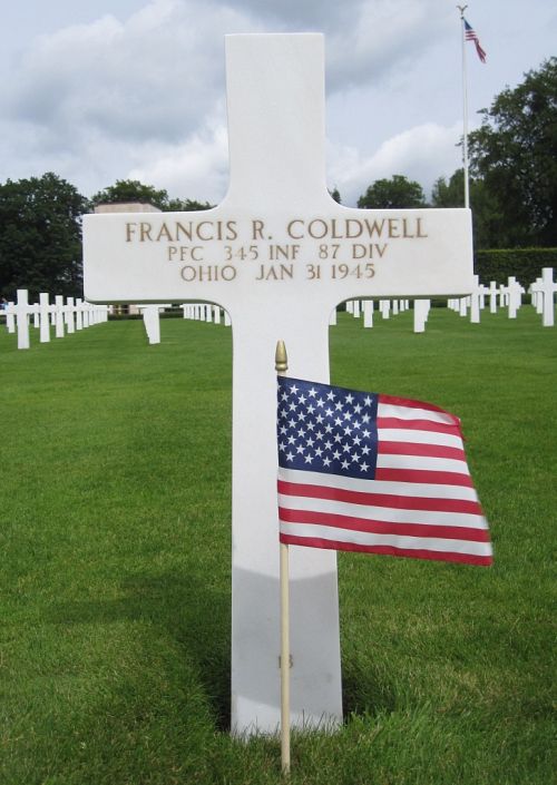 Pfc Francis R. Coldwell attended four years of high school and was employed by the U.S. Postal Service at the Mt. Gilead Post Office.He is remembered at the Bryn Zion Cemetery in Mount Gilead, Morrow County, Ohio.