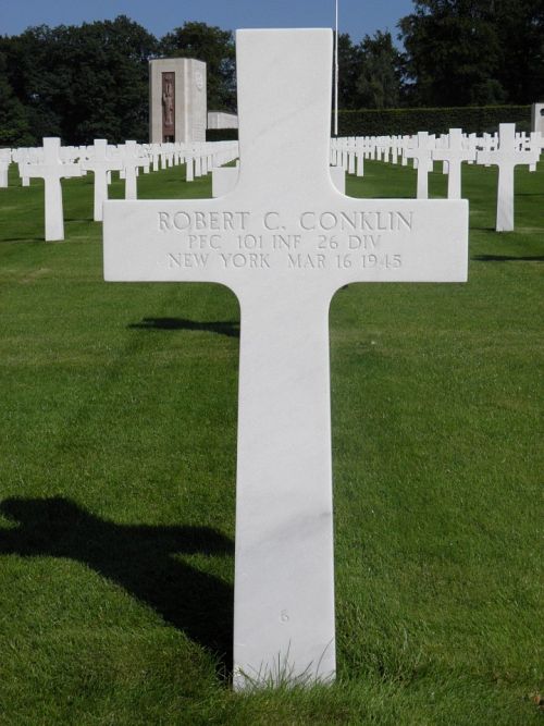 Pfc Robert C. Conklin was employed at the Capital Pierce Dye Works Inc. before he enlisted in New York City, New York on 12 February 1943.Source of information: Peter Schouteten, www.abmc.gov, www.wwiimemorial.com, www.archives.gov – WWII Enlistment Record, www.ancestry.com - Headstone and Interment Record / U.S. WWII Draft Cards Young Men, www.findagrave.com – R.C., www.fold3com – 26th Infantry Division