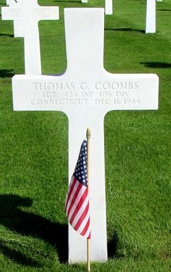 Sgt Thomas G. Coombs graduated from East Hartford High School and was employed at the New Britain Machine Company.He enlisted in Hartford, Connecticut on 8 March 1943 and was sent overseas in October, 1944.