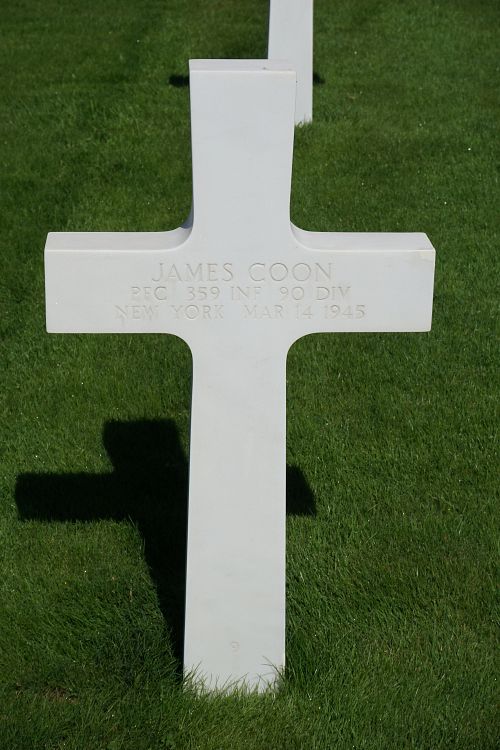 Pfc James Coon worked for the Buffalo Niagara Electric Company. before he enlisted in the Navy om October, 1940 and was commissioned as an ensign. He was honorably discharged after two years of service. He reentered the Army in January, 1943 and served with the Army Engineers until January, 1945 when he was transferred to the infantry.Source of information: Peter Schouteten, www.abmc.gov, www.wwiimemorial.com - William R. Coon, www.ancestry.com - Headstone and Interment Record / 1930 Census, www.findagrave.com - Russ Pickett