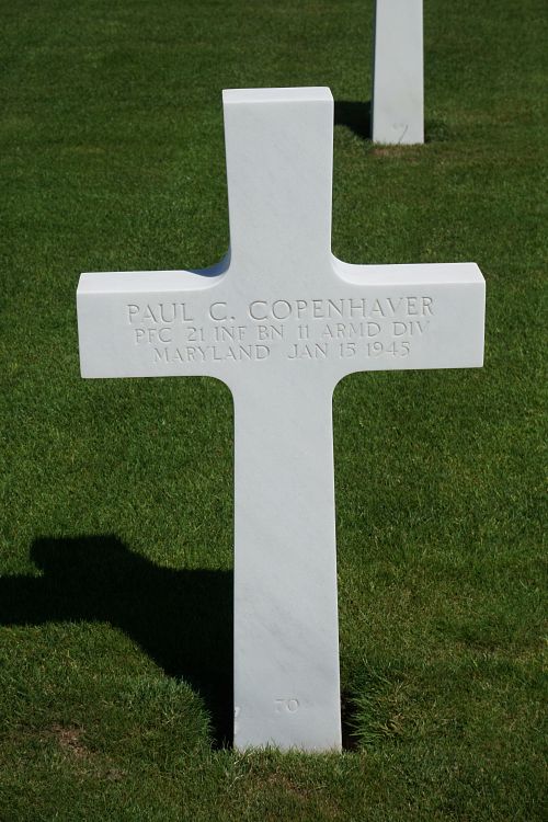 Pfc Paul C. Copenhaver enlisted in Baltimore, Maryland on 5 November 1942.Source of information: André Koch, www.abmc.gov, www.wwiimemorial.com, www.archives.gov - WWII Enlistment Record, www.ancestry.com - Headstone and Interment Records / 1920/1930/1940 Census / U.S. WWII Draft Cards Young Men 1940-1947, http://www.11tharmoreddivision.com