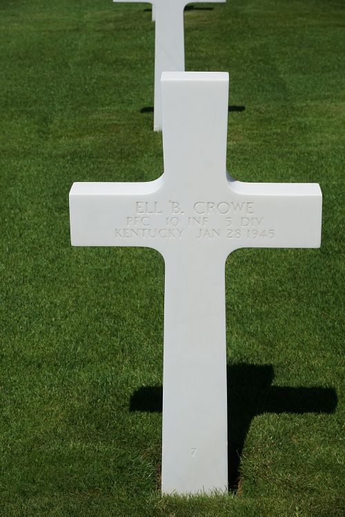Pfc Ell B. Crowe enlisted in Cincinatti, Ohio on 14 October 1943.He worked on a farm before he enlisted.
