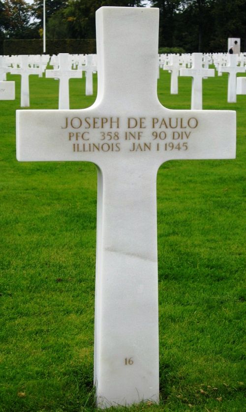 Pfc Joseph De Paulo attended 4 years of college before he enlisted in Snohomish, Washington.Source of information: Peter Schouteten, www.abmc.gov, www.wwiimemorial.com, www.archives.gov – WWII Enlistment Record, www.ancestry.com - Headstone and Interment Record / Cook County Illinois Marriage Index