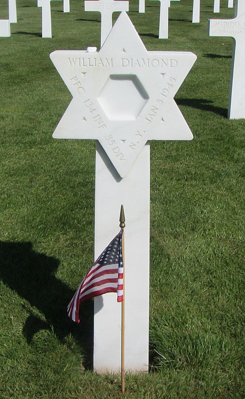 Pfc William Diamond attended college for one year and was a manager of the Royal Art Framing Company before he enlisted at Fort Dix, New Jersey on 9 January 1942. He was sent overseas in Spetember 1944.He was killed by artillery shell fragments to his face.