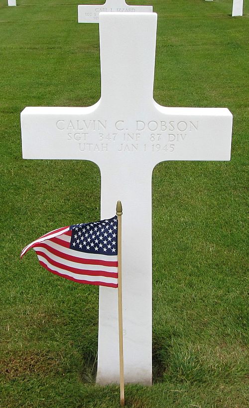 Sgt Calvin C. Dobson graduated from Tooele High School and attended Utah State Agricultural college for one year.He enlisted in Salt Lake City, Utah on 5 March 1943. He was sent overseas in October 1944.