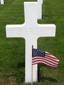Pvt Carmine J. Donnarumma attended two years of high school and was a longshoreman before he enlisted in New York City, New York on 5 September 1944.He was brought to the 35th Evacuation Hospital that was operating in the buildings of the Ecole Primaire de Bonnevoie, where he died of wounds at his humerus shaft, caused by artillery shell fragments. He was treated with a penicillin therapy.