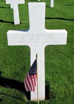 Sgt Steve Drotar attended high school for four years and was employed by Barnesboro Shirt Company (Phillips Jones Van Huesen) before he enlisted in Altoona, Pennsylvania on 10 July 1942.Source of information: Leo Minne, www.abmc.gov, www.wwiimemorial.com, www.ancestry.com – 1930/1940 Census / U.S. Headstone and Interment Record / U.S. Draft Cards Young Men / US WW2 Hospital Admission Cards, www.80thdivision.com