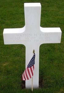 Sgt Warren H. Earl attended high school for three years and was employed by the Safeway Stores when he enlisted on 14 February 1942.In September 1944 he was wounded by artillery shell fragments in his heel.