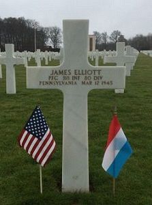 Pfc James Elliott was raised by his grandparents and attended Allentown High school and was employed by Bethlehem Steel Company.He enlisted in Allentown, Pennsylvania on 15 October 1942. He was sent overseas on 6 December 1944.
