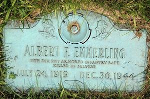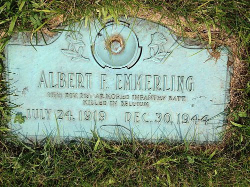 Pfc Albert F. Emmerling is remembered at the River Hills Memorial Park, Batavia, Kane County, Illinois.Source of information: André Koch, www.abmc.gov, www.wwiimemorial.com, www.ancestry.com - 1920/1930/1940 Census / Headstone and Interment Record / U.S. WWII Draft Cards Young Men, 1940-1947, http://www.11tharmoreddivision.com