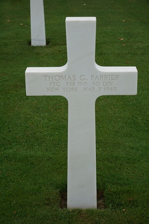 Pfc Thomas G. Farrier attended high school for three years and was employed at Royal Type Company.Source of information: Peter Schouteten, www.abmc.gov, www.wwiimemorial.com, www.ancestry.com - Headstone and Interment Record / Allen Family Tree