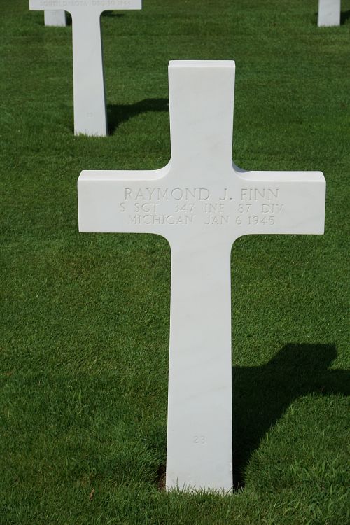 S/Sgt Raymond J. Finn was first buried at the Temporary American Military Cemetery in Grand Failly, France.Source of information: Peter Schouteten, www.abmc.gov, www.wwiimemorial.com, www.ancestry.com - Headstone and Interment Record / 1930/1940 Census / U.S. WWII Draft Cards Young Men, http://87thinfantrydivision.com