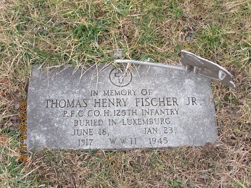 Pfc Thomas H. Fischer Jr. was a foreman before he enlisted in New Cumberland, Pennsylvania, on 12 May 1944.He is remembered at the Mount Prospect Cemetery in Hickory, Washington County, Pennsylvania.