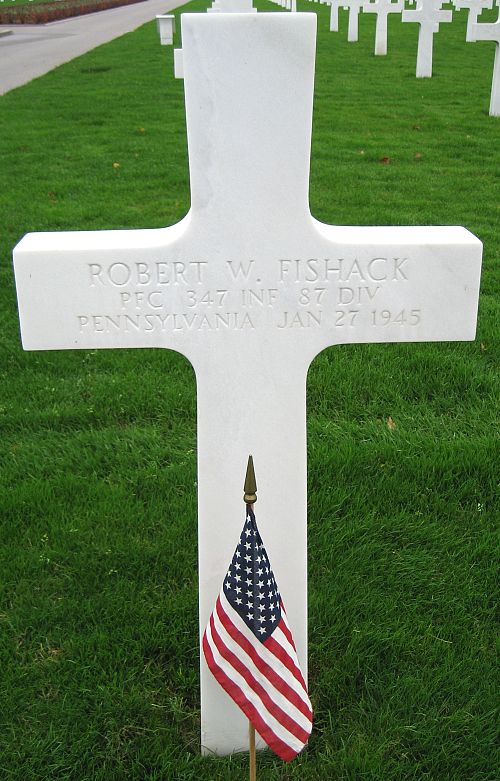 Pfc Robert W. Fishack enlisted in Harrisburg, Pennsylvania on 12 March 1943.Source of information: Peter Schouteten, www.abmc.gov, www.wwiimemorial.com, www.archives.gov - WWII Enlistment Record, www.ancestry.com - Headstone and Interment Record / 1940 Census / U.S. WWII Draft Cards Young Men, http://87thinfantrydivision.com, www.findagrave.com