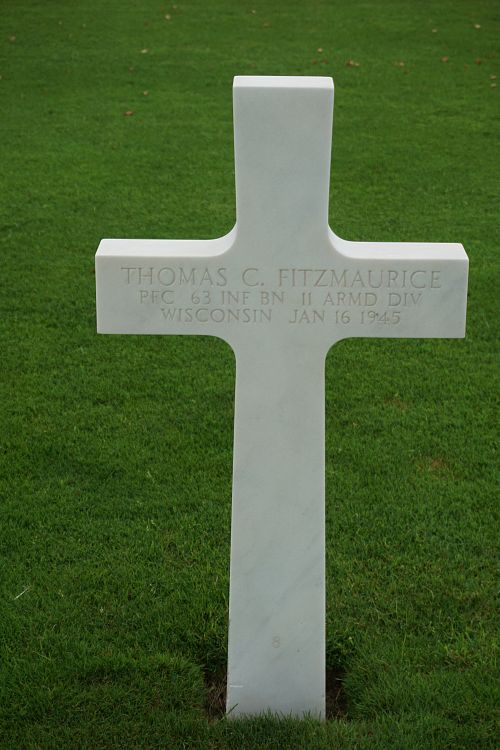 Pfc Thomas C. Fitzmaurice enlisted in Milwaukee, Wisconsin on 19 October 1942. He trained in Louisiana, Texas and California.Source of information: André Koch, www.abmc.gov, www.wwiimemorial.com, www.archives.gov - WWII Enlistment Record, www.ancestry.com - Headstone and Interment Record / 1930/1940 Census / U.S. WWII Draft Cards Young Men 1940-1947, http://www.11tharmoreddivision.com