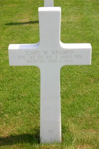 Pfc Carl M. Kramer was born in Winsen, Germany and emigrated to the United States on 13 May 1927, arriving in New York City, New York on the vessel SS Columbus, under the name of Karl Kramer. He married Vernie Bates in 1933 at Bentonville, Arkansas, the place where their daughter was born two years later. Pfc Kramer became a U.S. citizen in 1937. He was a janitor and resided at Chicago, Illinois.Source of information: Peter Schouteten, Astrid van Erp, www.wwiimemorial.com, www.7tharmddiv.org, www.ancestry.com - Headstone and Interment Record / Family Tree / Naturalization Record